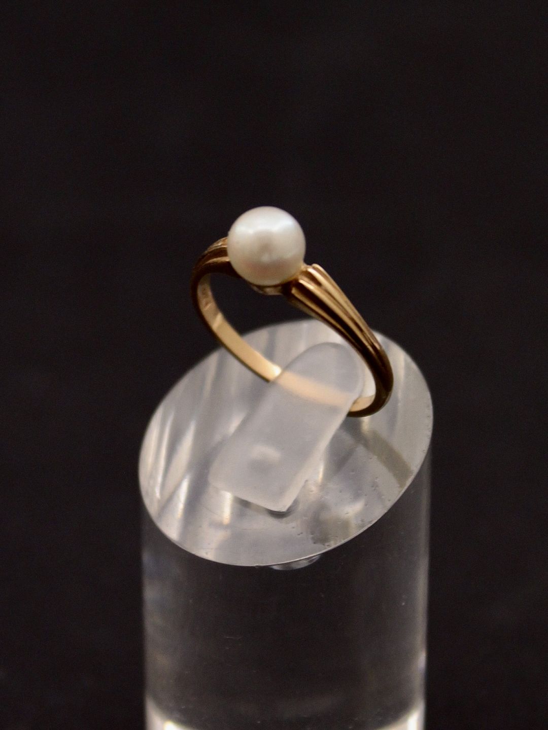 14 karat guld ring størrelse 53-54 med ægte perle stemplet 585 emne nr. 623431