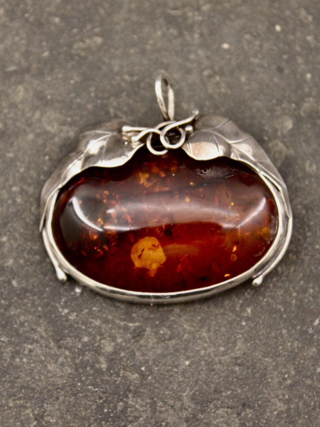 Amber pendant/brooch mounted in sterling silver 5.1 x 3.8 cm. item no. 622954
