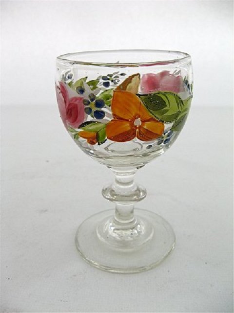 Rosenmalet vinglas fra midt 1800-tallet højde 9,6 cm.