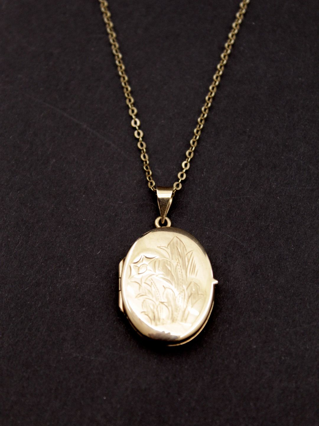 Juveler B. Hertz København 8 karat guld medallion 2 x 2,8 cm. og halskæde L. 54 cm. Nr. 293487