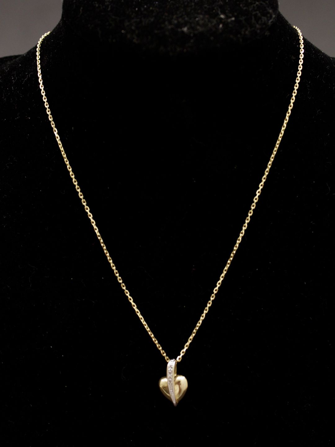14 karat halskæde L. 38,5 cm. og hjerte vedhæng 1,6 x 1 cm. Nr. 338457
