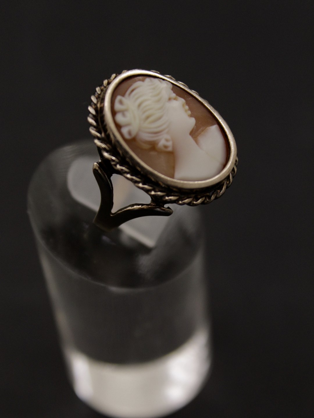 8 karat guldring størrelse 56 med came 1,5 x 1,9 cm.