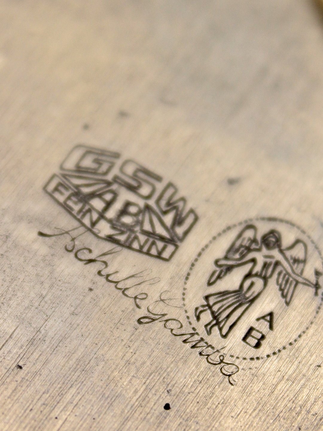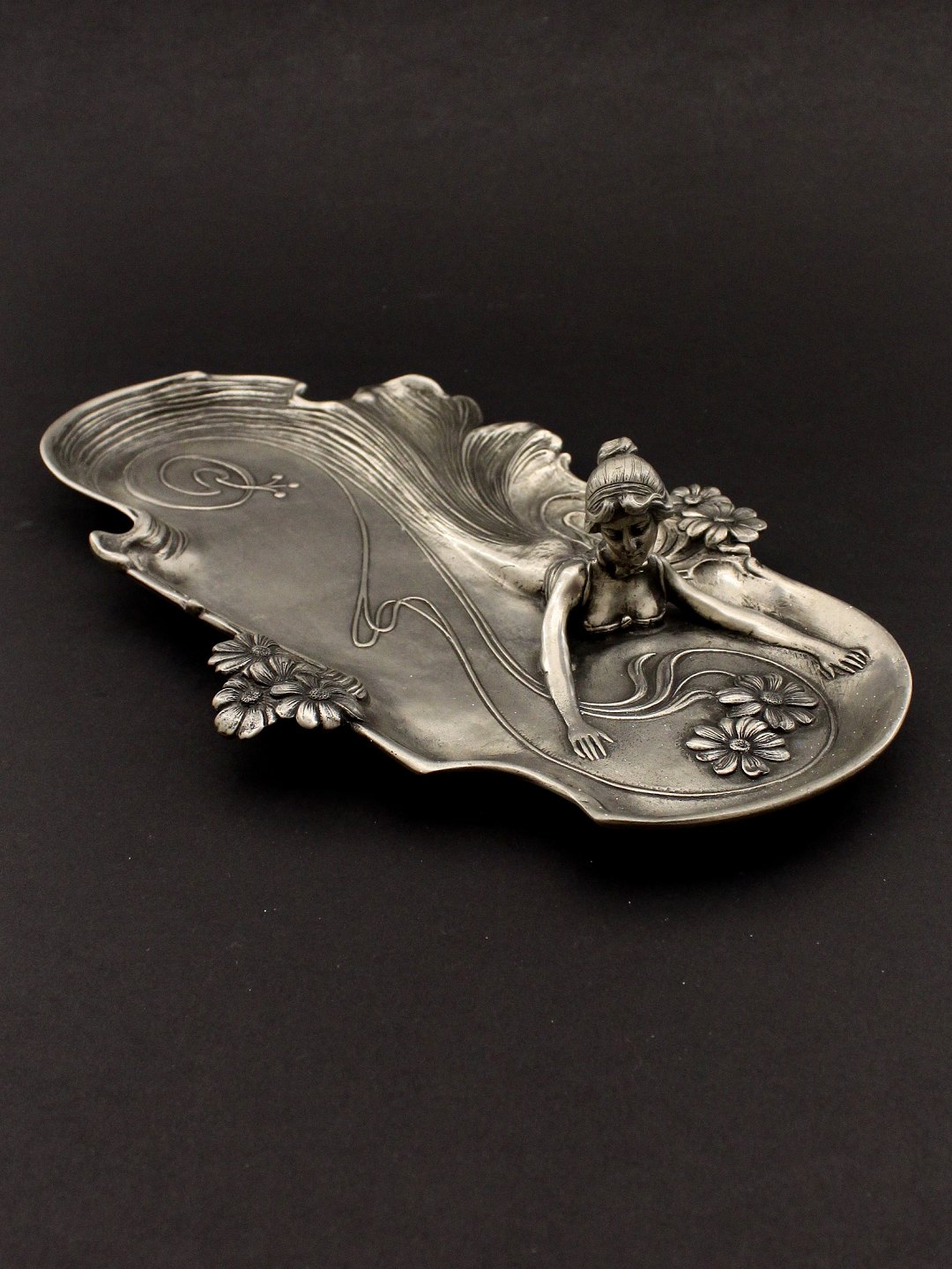 Art Nouveau / jugend bakke 36,5 x 21 cm. stemplet Zinn-achille Gawbo Nr. 431278