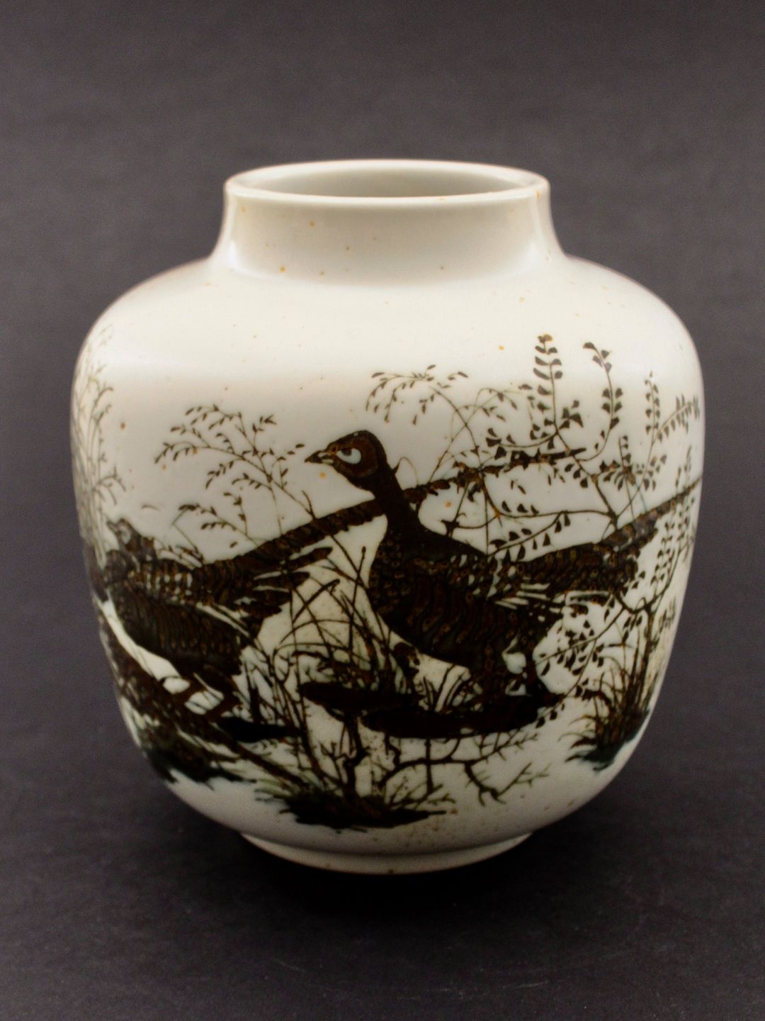 Royal Copenhagen stentøjs vase med med motiv af fasaner kunstner Nils Thorsson Nummer 1062/5357.