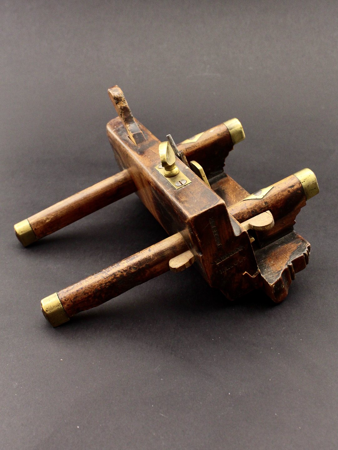 Træ høvl L. 25 cm monteret med messing 19.årh. emne nr.
