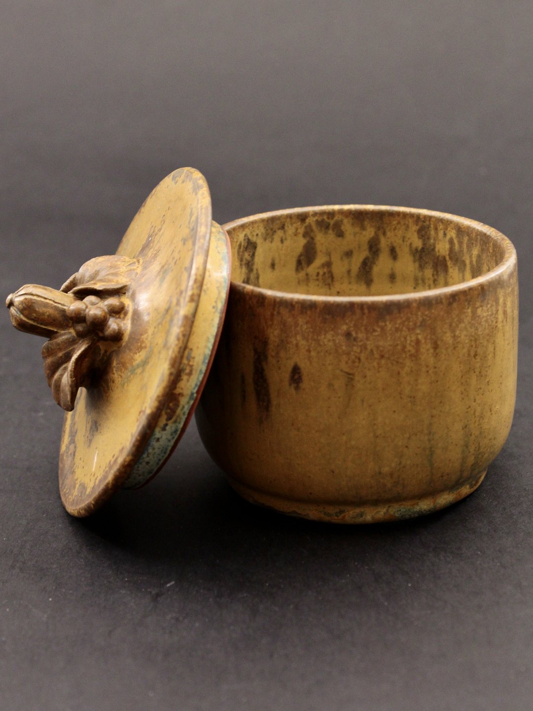 Arne Bang skål med låg 12 højde 11 cm. dia. 10 cm. signeret monogram AB emne nr. 463852