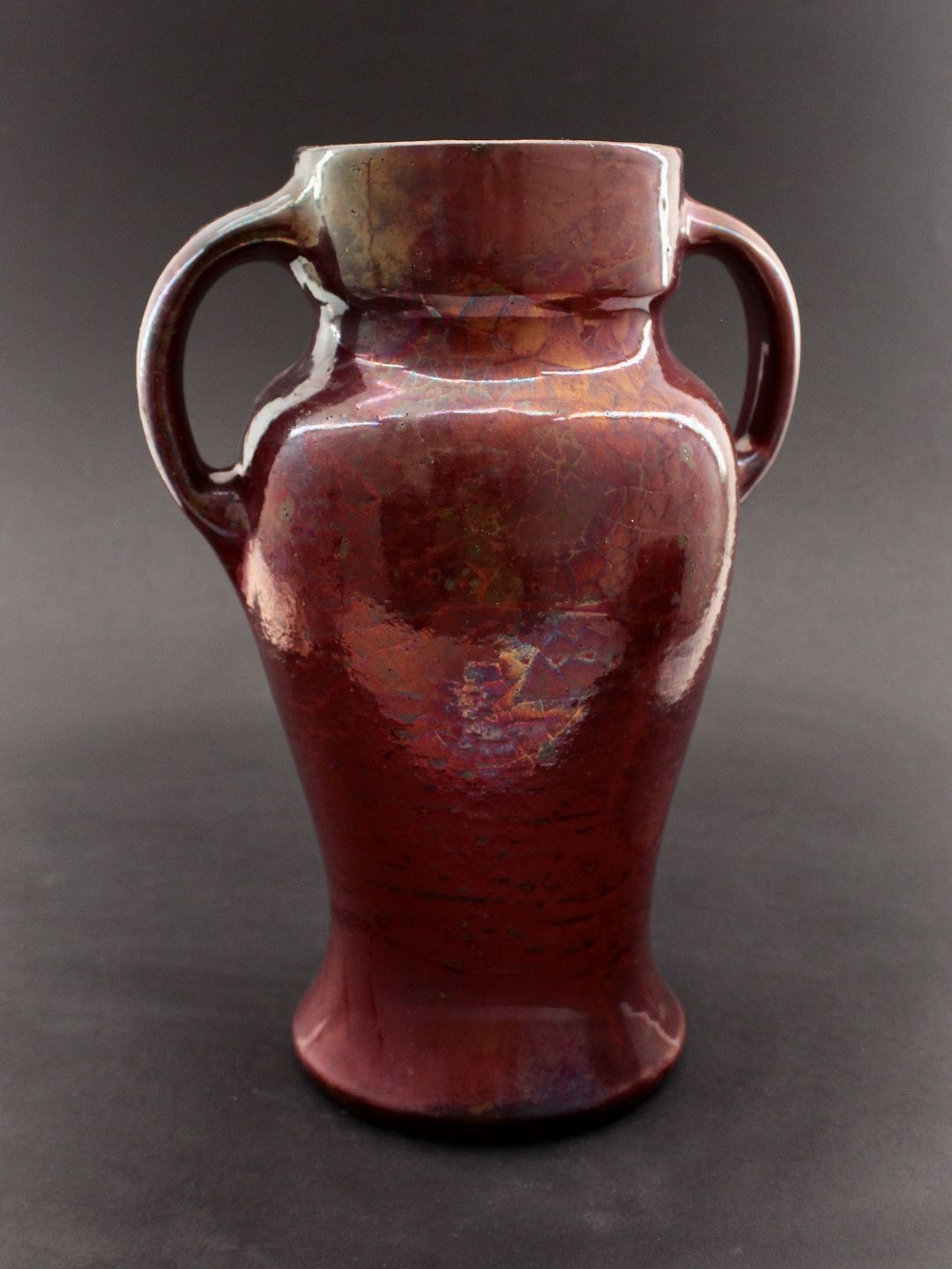 Karl Hansen Reistrup for Kähler rød lustre vase med hanke 36 cm. 19.årh. emne nr. 468552