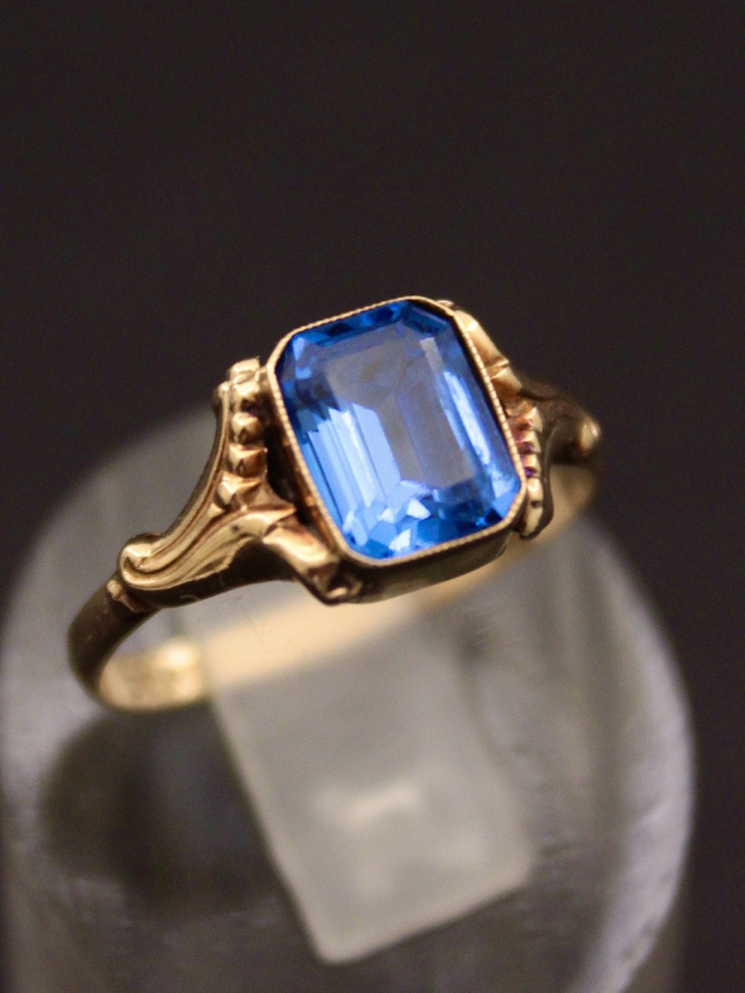 14 karat guld ring størrelse 55 med aquamarin fra juveler Viggo Petersen København. emne nr. 483681