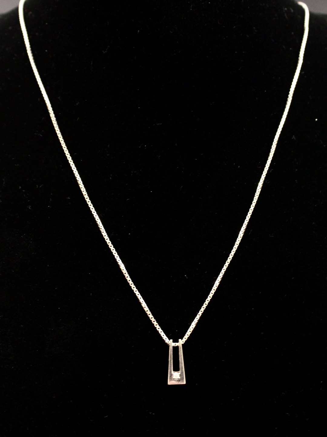 14 karat hvid guld vedhæng 0,5 x 1,3 cm. med diamant og kæde 46 cm. emne nr. 506029