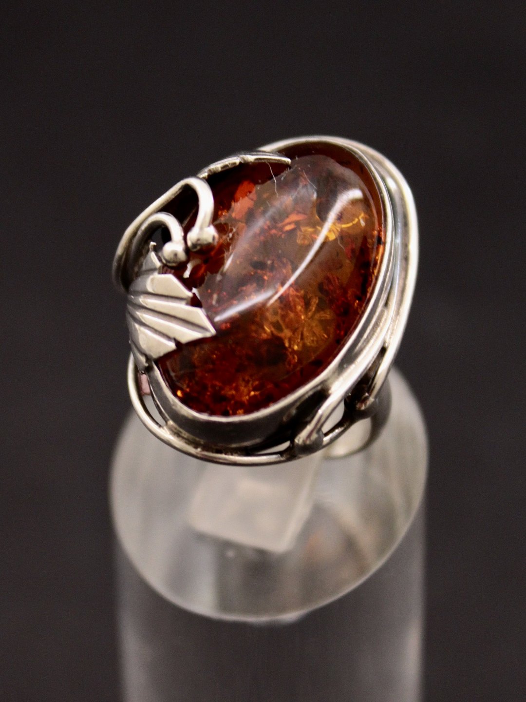 Sterling sølv ring størrelse 54 med rav 2,5 x 1,7 cm. emne nr. 593049