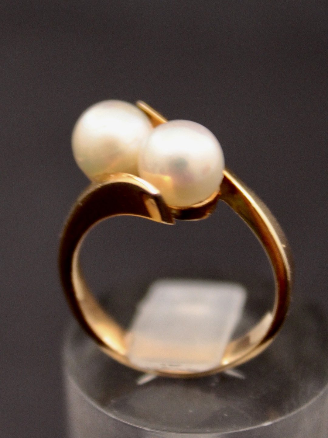 14 karat guld ring størrelse 53 med 2 ægte perler emne nr. 595553