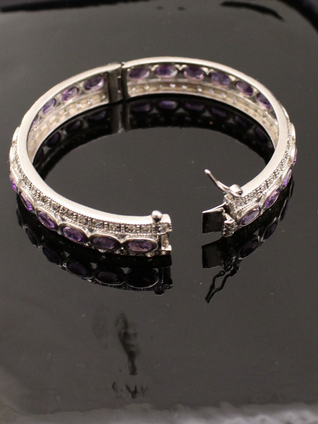 Sterling sølv armring med ametyster omgivet af klare stene Indvendig 5.5 cm. B. 1,2cm. stemplet 925 emne nr. 603846