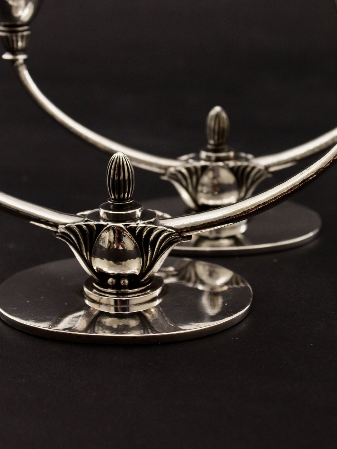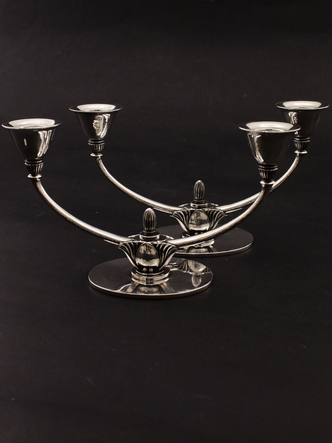 Georg Jensen 2 armet sterling sølv art deco lysestager 273A emne nr. 622667
