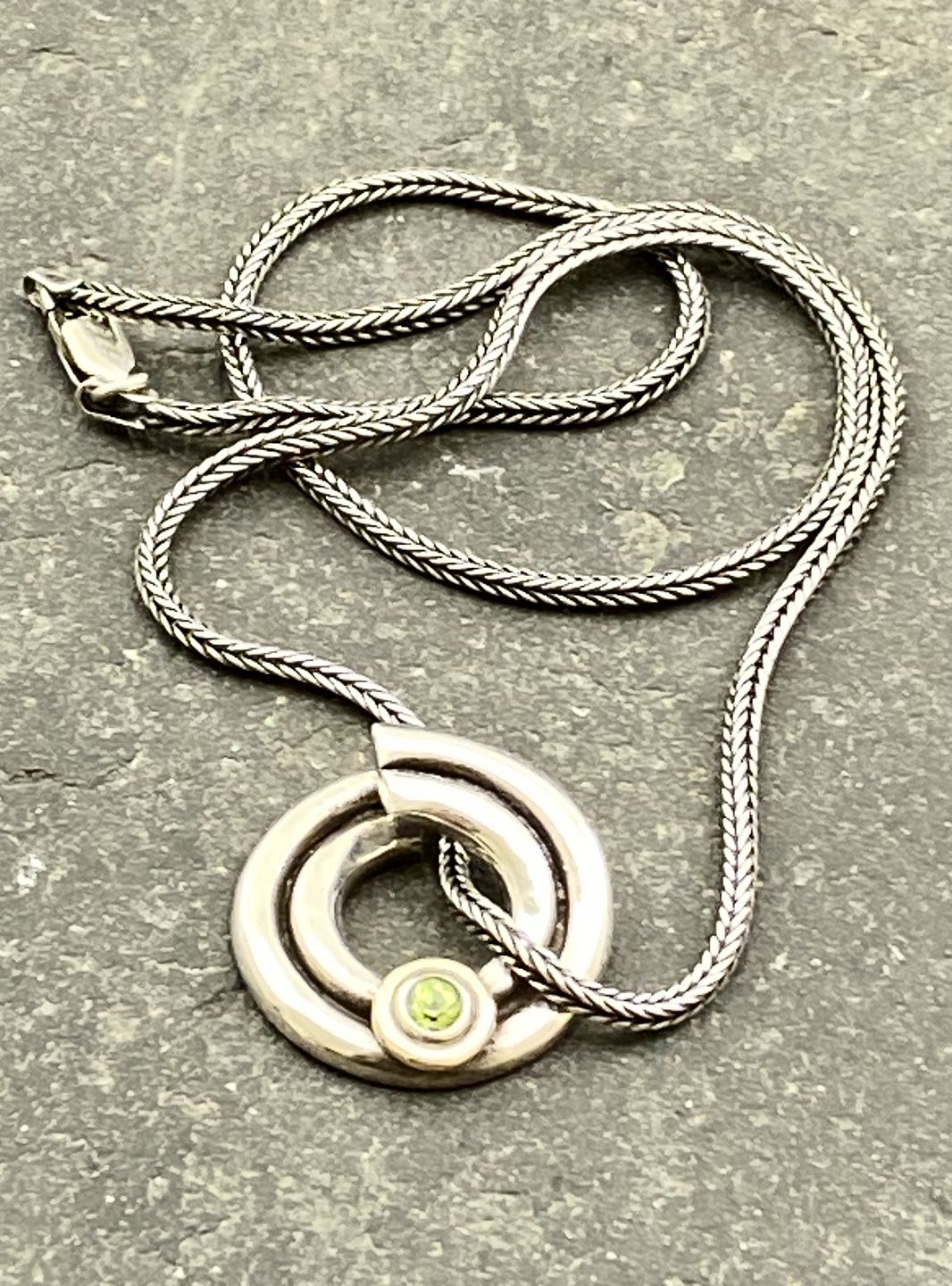 Sterling sølv vedhæng D.2,5 cm. med sø grøn halvædelsten og 45 cm. sterling sølv kæde emne nr. 626583