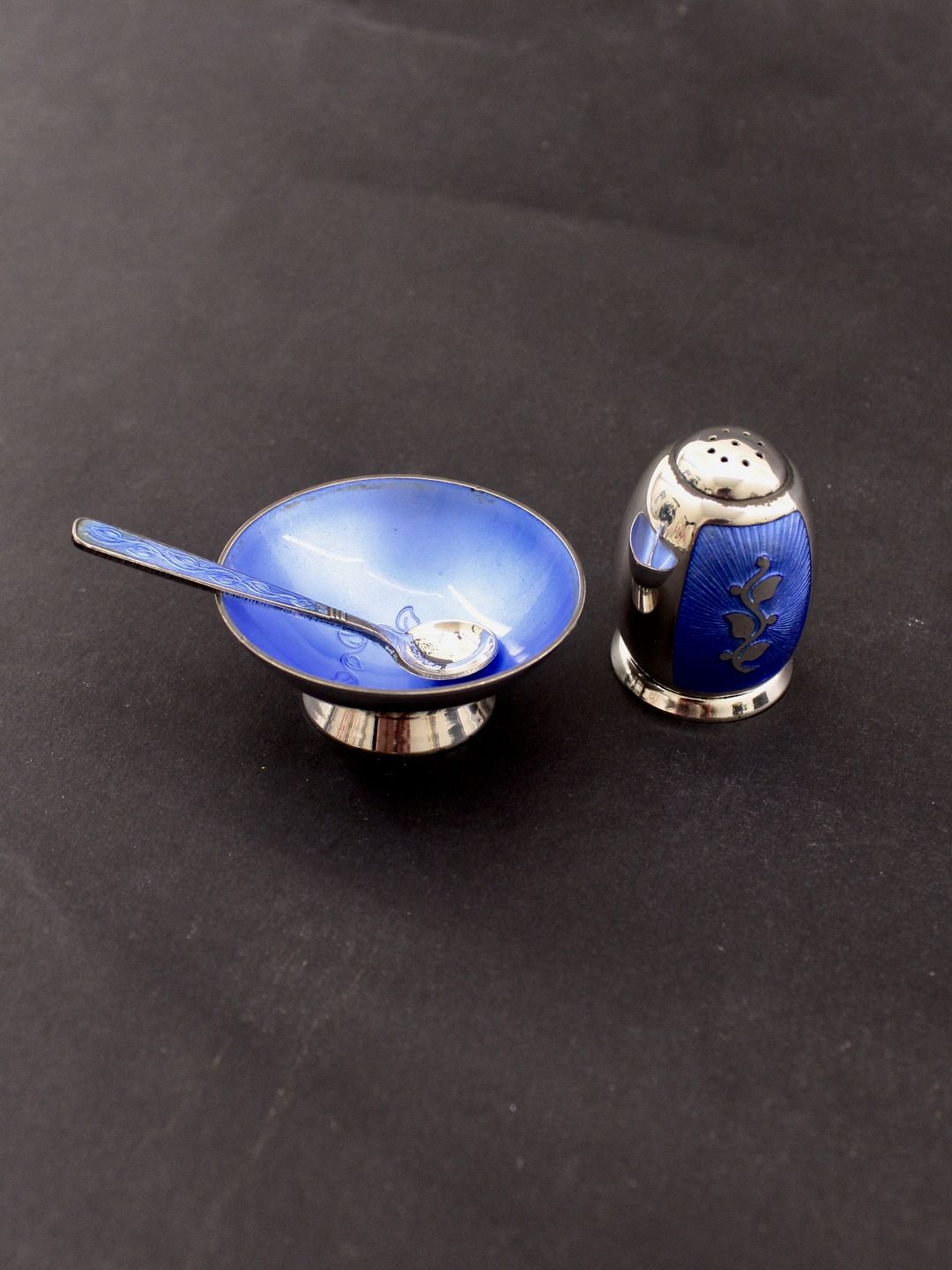 Salt peper sæt sterling sølv med emalje fra sølvsmed Volmer Bahner København emne nr. 629675