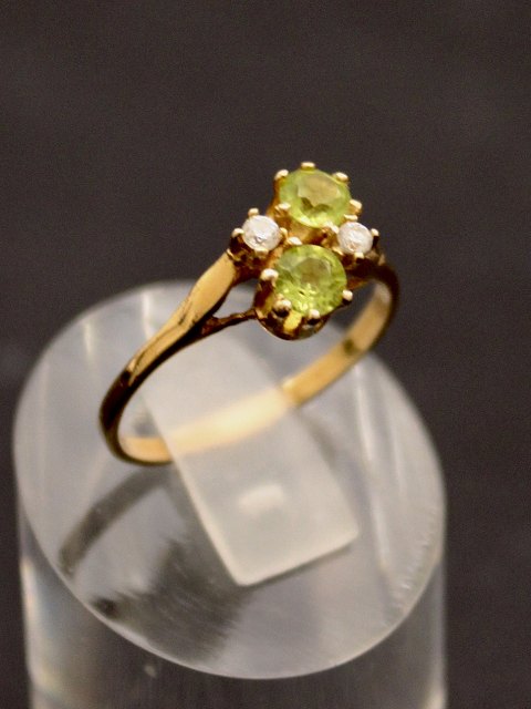 14 karat guld ring størrelse 54 med 2 klare og to lysegrønne stene emne nr. 636271