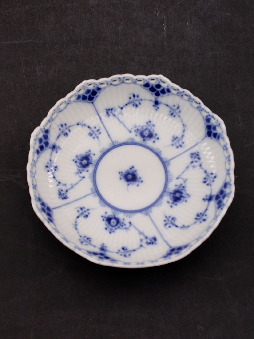 Royal musselmalet hel blonde skål på fod 1/1023 D. 17,5 cm. 1.sortering emne nr. 636881